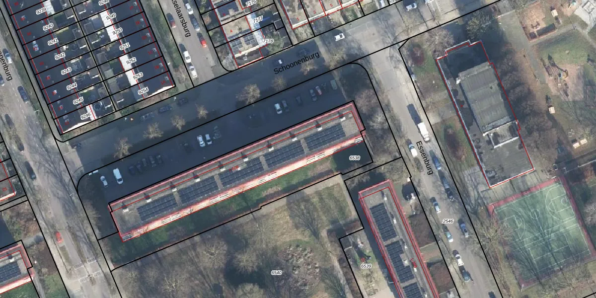 Het perceel waarop Schoonenburg 48 staat heeft een oppervlakte van 1955 m². Dit is een zeer groot perceel. De perceeloppervlakte wordt geregistreerd door het Kadaster. Gedetailleerde informatie over de maten van dit perceel kunt u vinden in het rapport Kadastrale kaart met maatvoering van Schoonenburg 48.