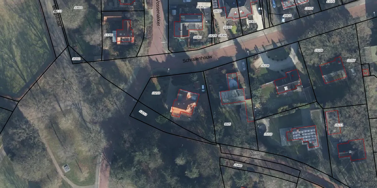 Het perceel waarop Schralenhouw 2 staat heeft een oppervlakte van 940 m². Dit is een groot perceel. De perceeloppervlakte wordt geregistreerd door het Kadaster. Gedetailleerde informatie over de maten van dit perceel kunt u vinden in het rapport Kadastrale kaart met maatvoering van Schralenhouw 2.