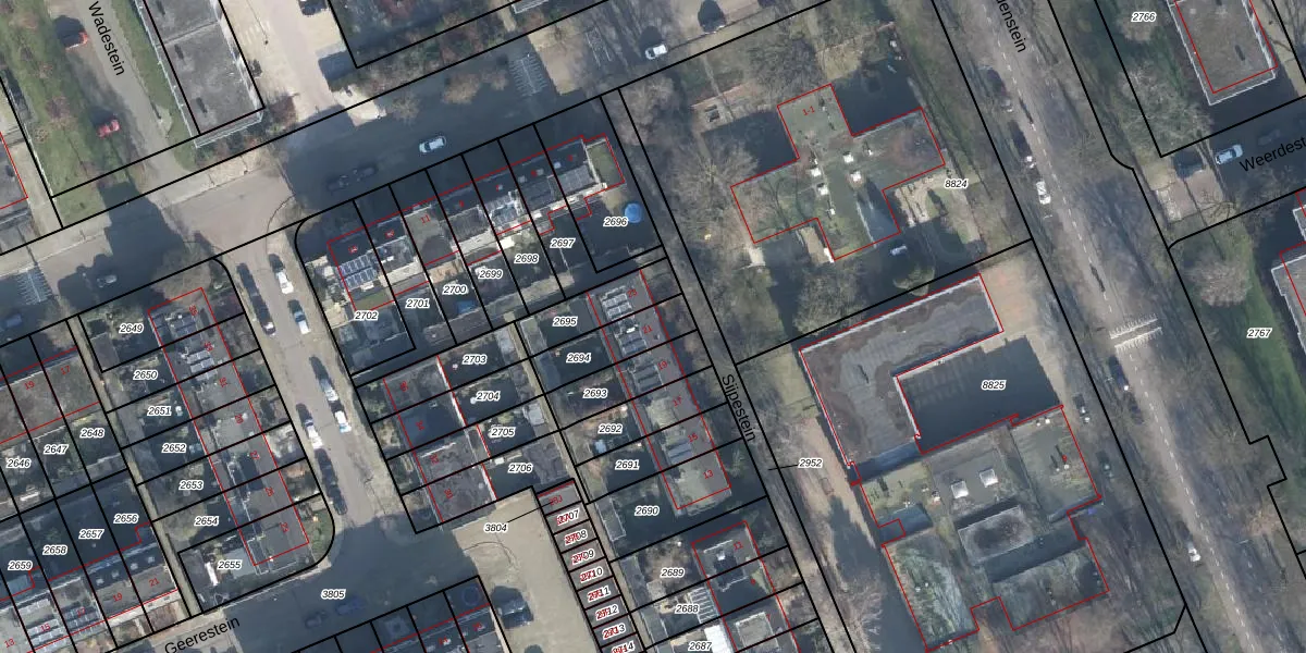 Gebruik de zoekbalk of klik op een perceel voor informatie over de adressen binnen dit perceel.