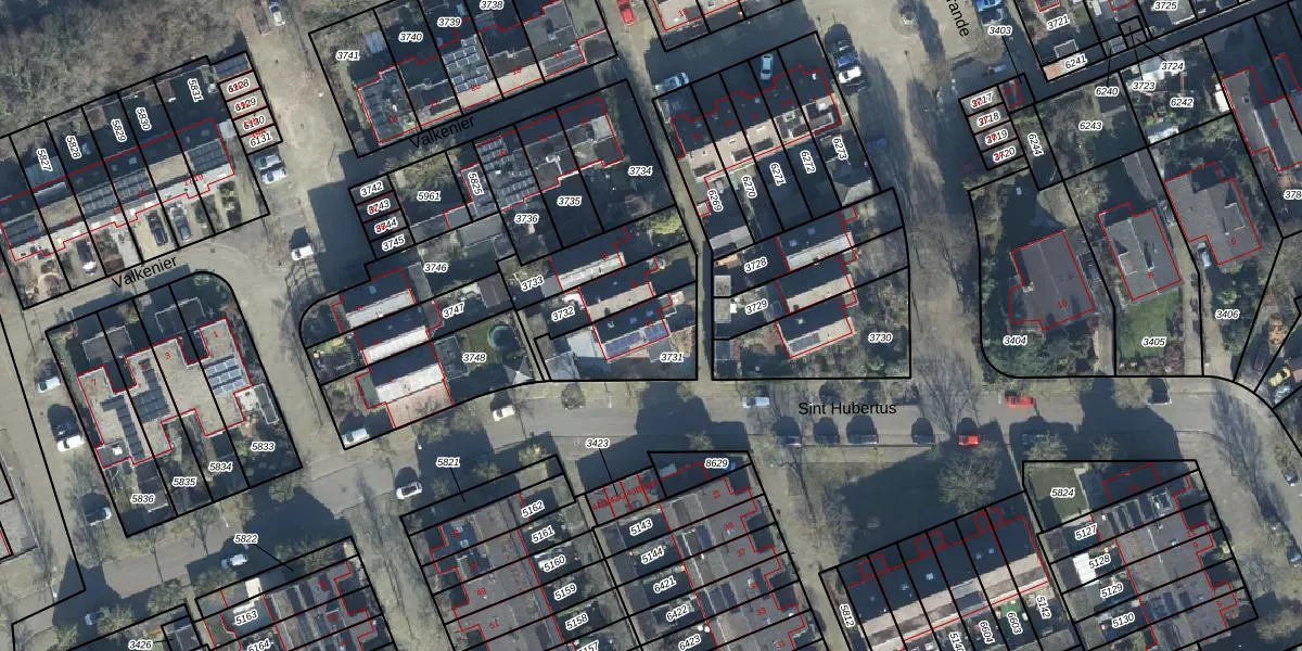 Gebruik de zoekbalk of klik op een perceel voor informatie over de adressen binnen dit perceel.