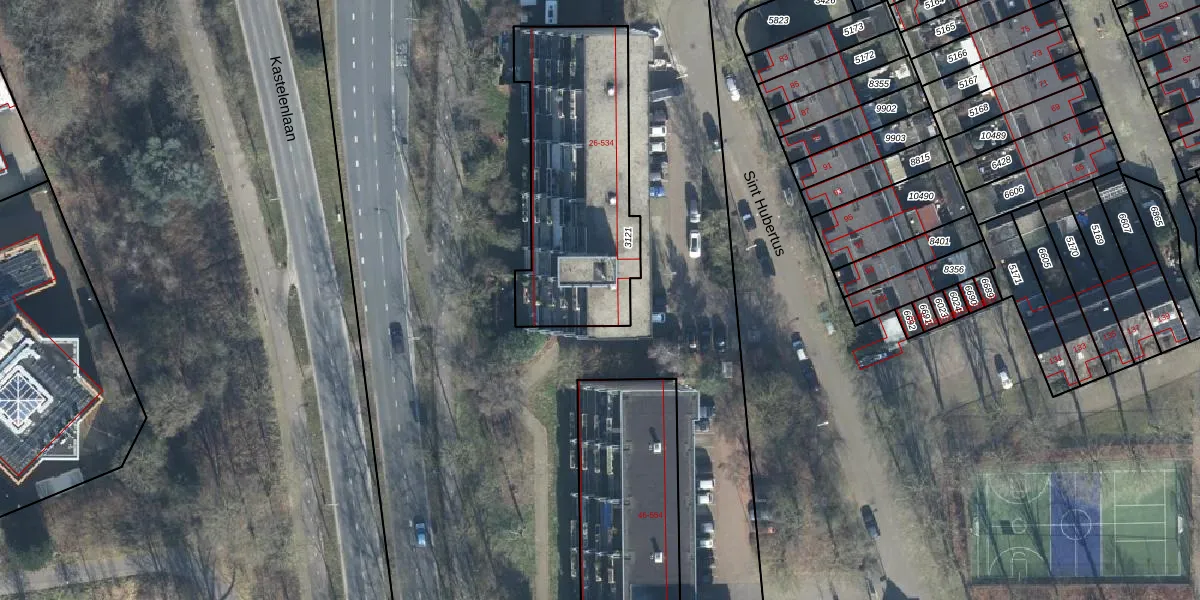 Het perceel waarop Sint Hubertus 134 staat heeft een oppervlakte van 884 m². Dit is een groot perceel. De perceeloppervlakte wordt geregistreerd door het Kadaster. Gedetailleerde informatie over de maten van dit perceel kunt u vinden in het rapport Kadastrale kaart met maatvoering van Sint Hubertus 134.