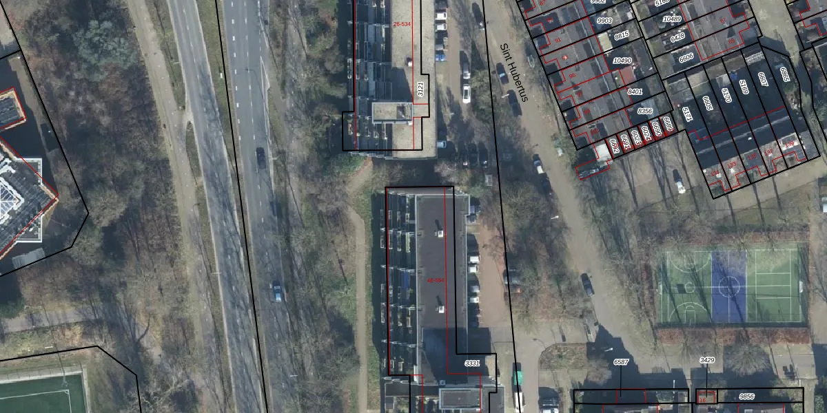 Het perceel waarop Sint Hubertus 336 staat heeft een oppervlakte van 1745 m². Dit is een zeer groot perceel. De perceeloppervlakte wordt geregistreerd door het Kadaster. Gedetailleerde informatie over de maten van dit perceel kunt u vinden in het rapport Kadastrale kaart met maatvoering van Sint Hubertus 336.