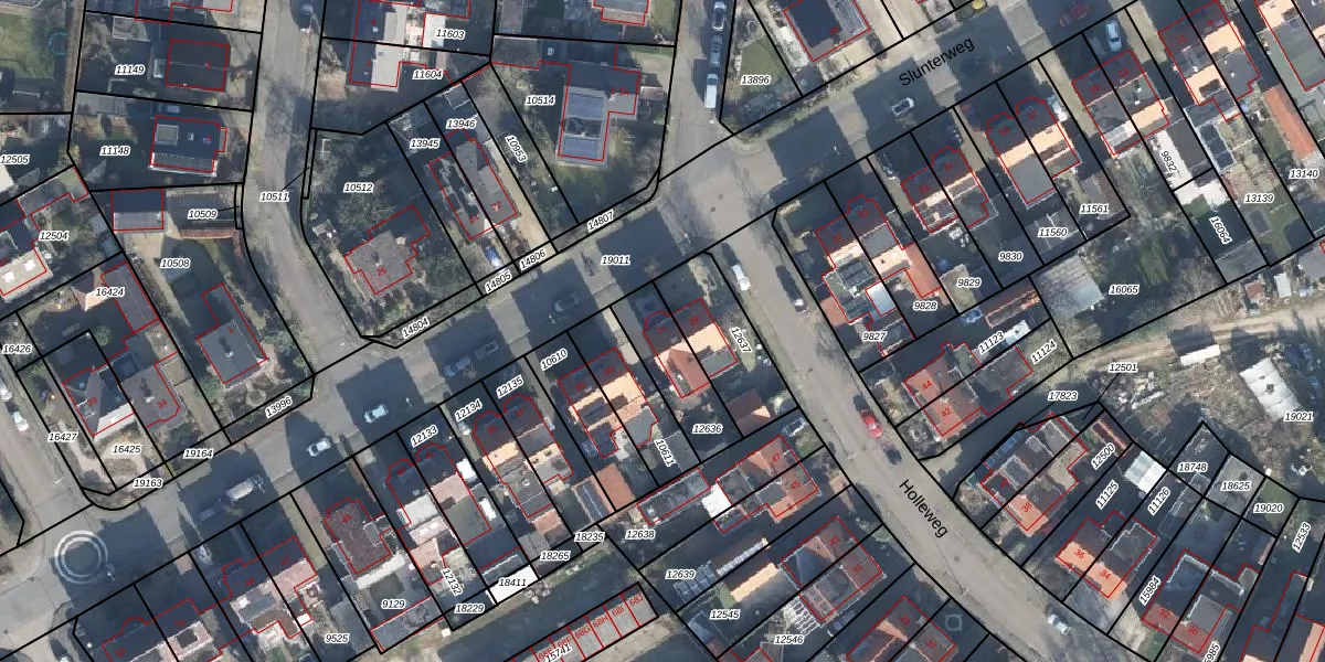 Gebruik de zoekbalk of klik op een perceel voor informatie over de adressen binnen dit perceel.