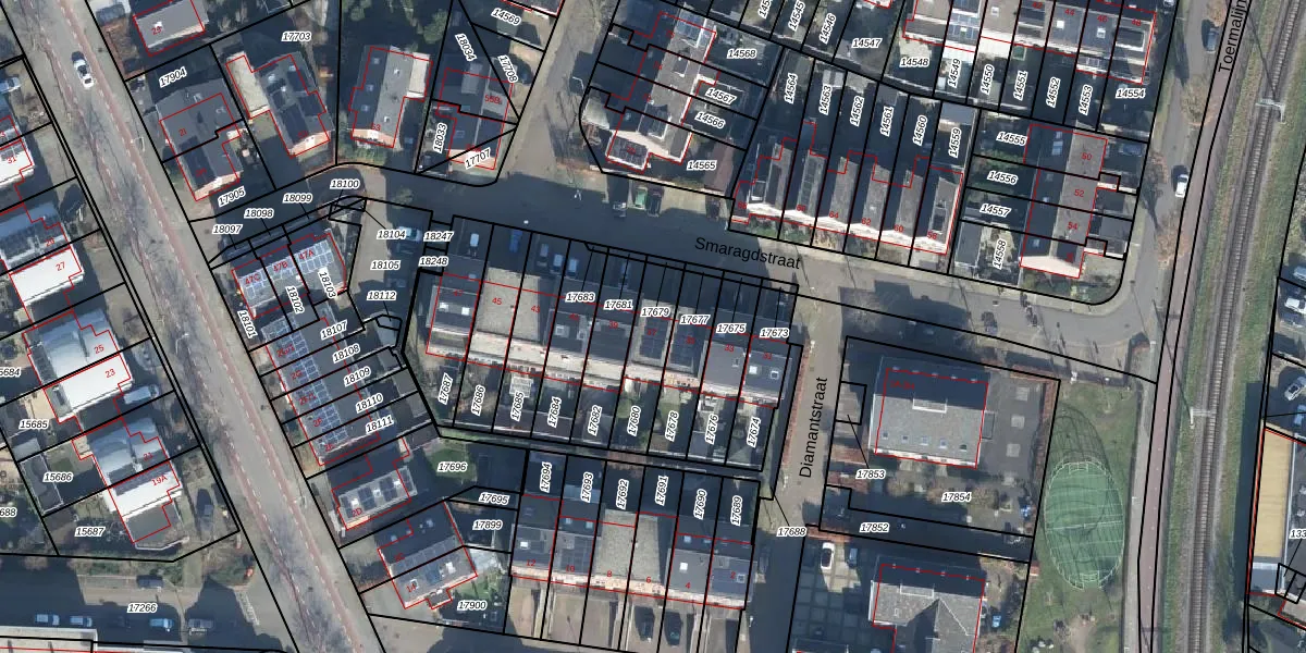 Het perceel waarop Smaragdstraat 37 staat heeft een oppervlakte van 174 m². Dit is een middelgroot perceel. De perceeloppervlakte wordt geregistreerd door het Kadaster. Gedetailleerde informatie over de maten van dit perceel kunt u vinden in het rapport Kadastrale kaart met maatvoering van Smaragdstraat 37.