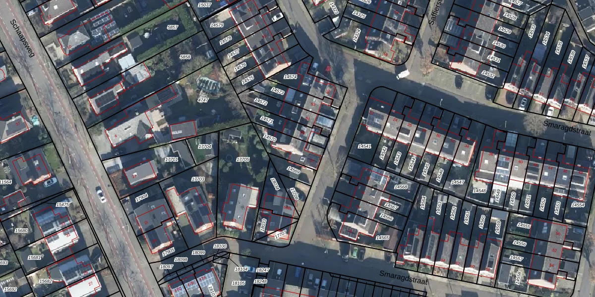 Het perceel waarop Smaragdstraat 57 staat heeft een oppervlakte van 172 m². Dit is een middelgroot perceel. De perceeloppervlakte wordt geregistreerd door het Kadaster. Gedetailleerde informatie over de maten van dit perceel kunt u vinden in het rapport Kadastrale kaart met maatvoering van Smaragdstraat 57.