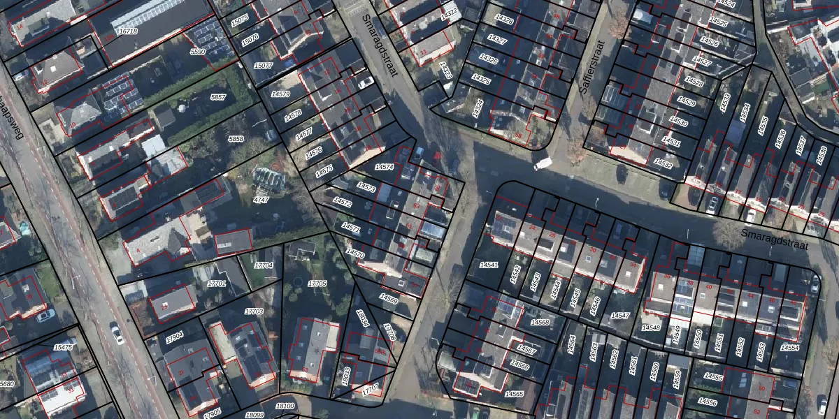 Gebruik de zoekbalk of klik op een perceel voor informatie over de adressen binnen dit perceel.