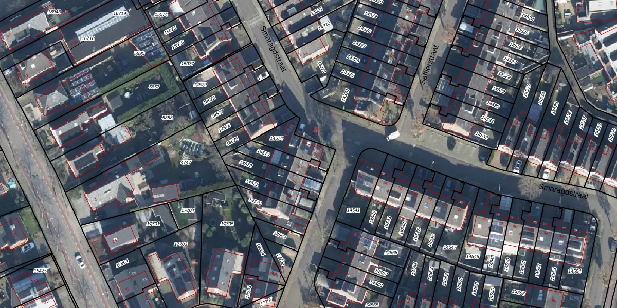 Het perceel waarop Smaragdstraat 65 staat heeft een oppervlakte van 180 m². Dit is een middelgroot perceel. De perceeloppervlakte wordt geregistreerd door het Kadaster. Gedetailleerde informatie over de maten van dit perceel kunt u vinden in het rapport Kadastrale kaart met maatvoering van Smaragdstraat 65.