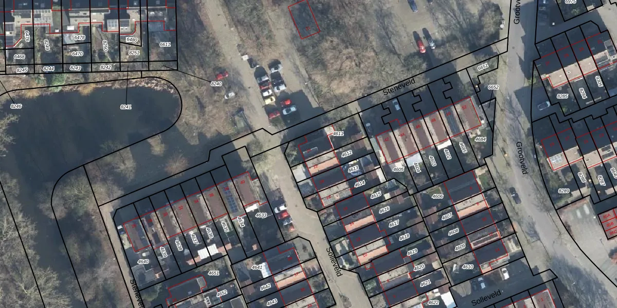 Gebruik de zoekbalk of klik op een perceel voor informatie over de adressen binnen dit perceel.