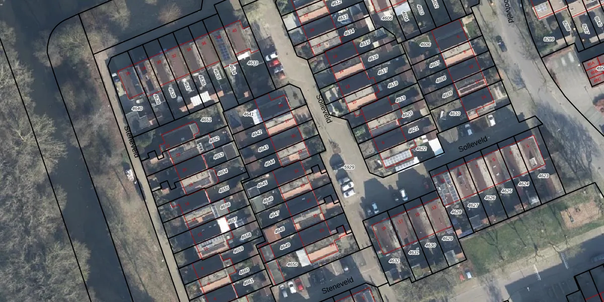 Gebruik de zoekbalk of klik op een perceel voor informatie over de adressen binnen dit perceel.