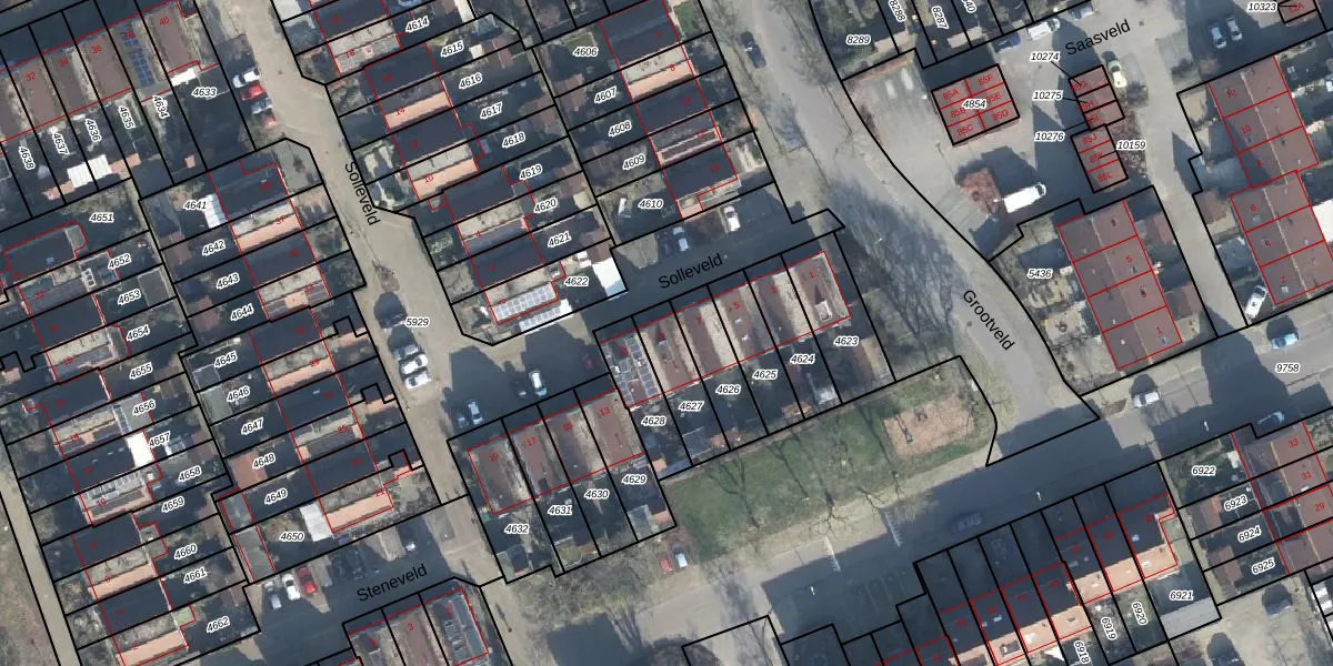 Gebruik de zoekbalk of klik op een perceel voor informatie over de adressen binnen dit perceel.