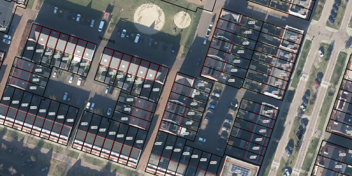 Het perceel waarop Spinnerij 17 staat heeft een oppervlakte van 121 m². Dit is een middelgroot perceel. De perceeloppervlakte wordt geregistreerd door het Kadaster. Gedetailleerde informatie over de maten van dit perceel kunt u vinden in het rapport Kadastrale kaart met maatvoering van Spinnerij 17.