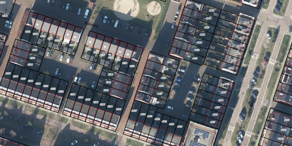 Het perceel waarop Spinnerij 19 staat heeft een oppervlakte van 121 m². Dit is een middelgroot perceel. De perceeloppervlakte wordt geregistreerd door het Kadaster. Gedetailleerde informatie over de maten van dit perceel kunt u vinden in het rapport Kadastrale kaart met maatvoering van Spinnerij 19.