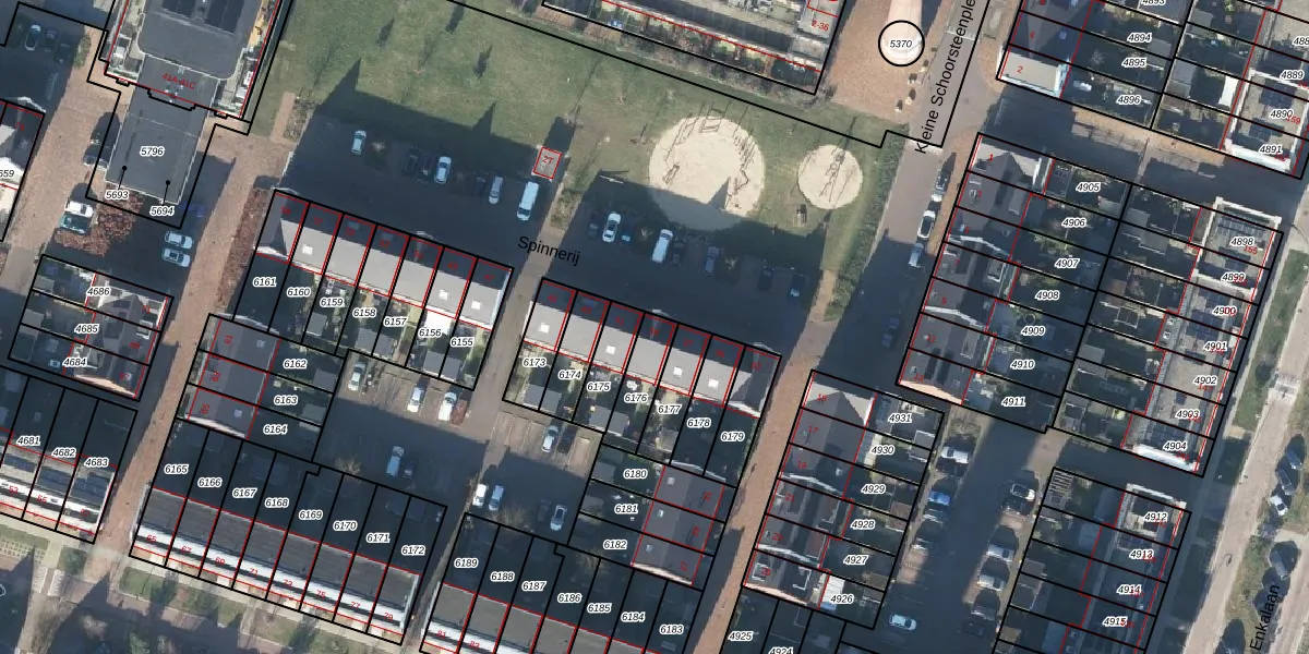 Het perceel waarop Spinnerij 39 staat heeft een oppervlakte van 115 m². Dit is een middelgroot perceel. De perceeloppervlakte wordt geregistreerd door het Kadaster. Gedetailleerde informatie over de maten van dit perceel kunt u vinden in het rapport Kadastrale kaart met maatvoering van Spinnerij 39.