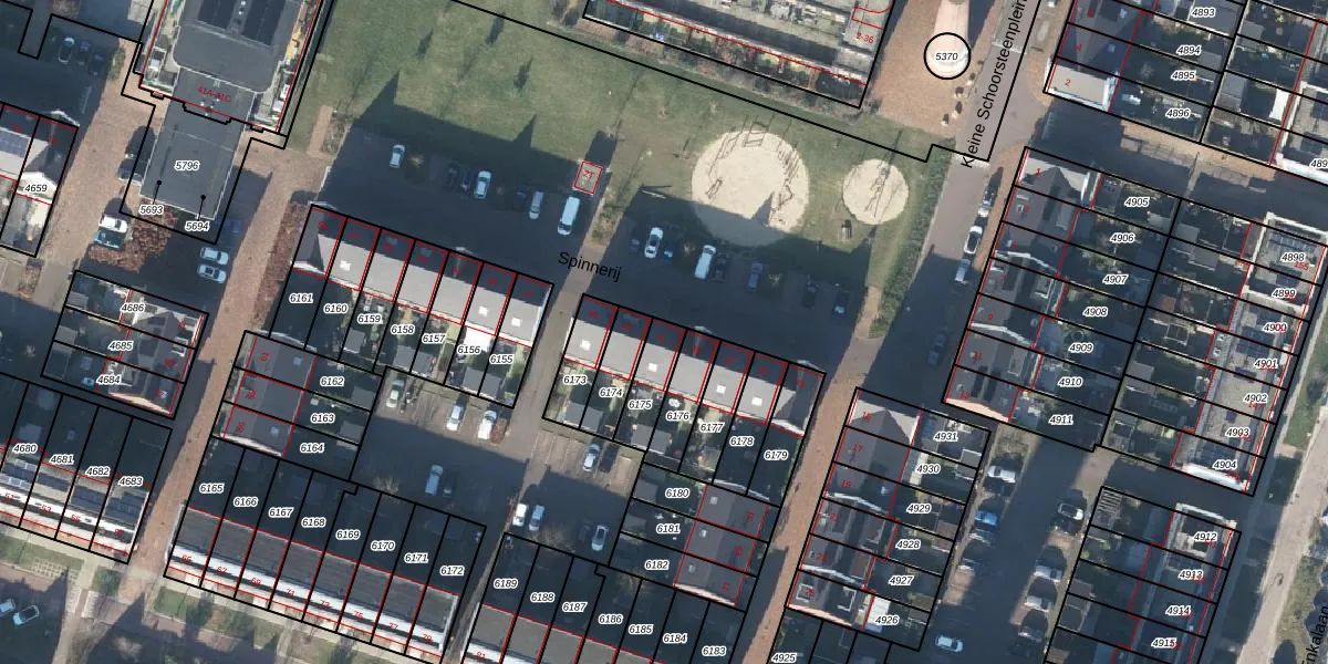 Het perceel waarop Spinnerij 41 staat heeft een oppervlakte van 106 m². Dit is een middelgroot perceel. De perceeloppervlakte wordt geregistreerd door het Kadaster. Gedetailleerde informatie over de maten van dit perceel kunt u vinden in het rapport Kadastrale kaart met maatvoering van Spinnerij 41.