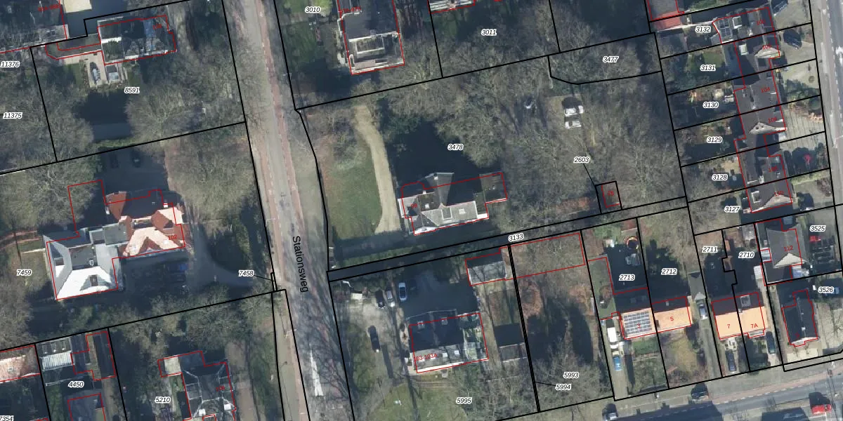 Het perceel waarop Stationsweg 99 staat heeft een oppervlakte van 3137 m². Dit is een zeer groot perceel. De perceeloppervlakte wordt geregistreerd door het Kadaster. Gedetailleerde informatie over de maten van dit perceel kunt u vinden in het rapport Kadastrale kaart met maatvoering van Stationsweg 99.