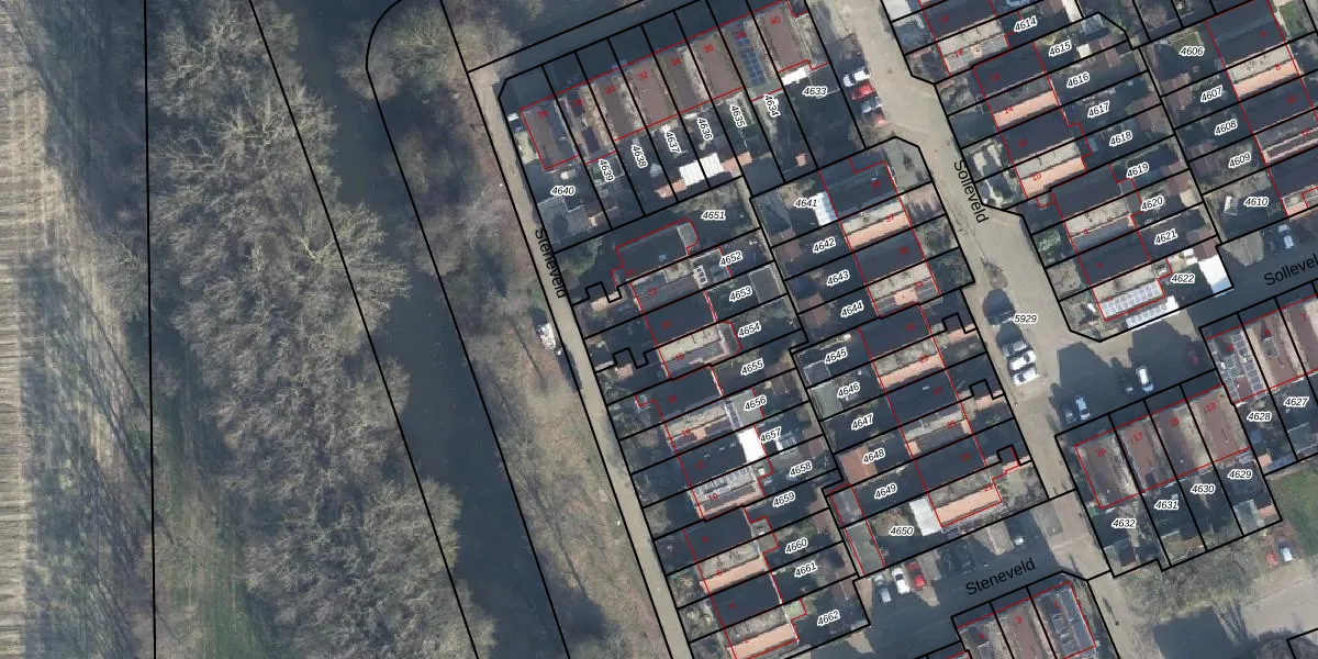 Gebruik de zoekbalk of klik op een perceel voor informatie over de adressen binnen dit perceel.