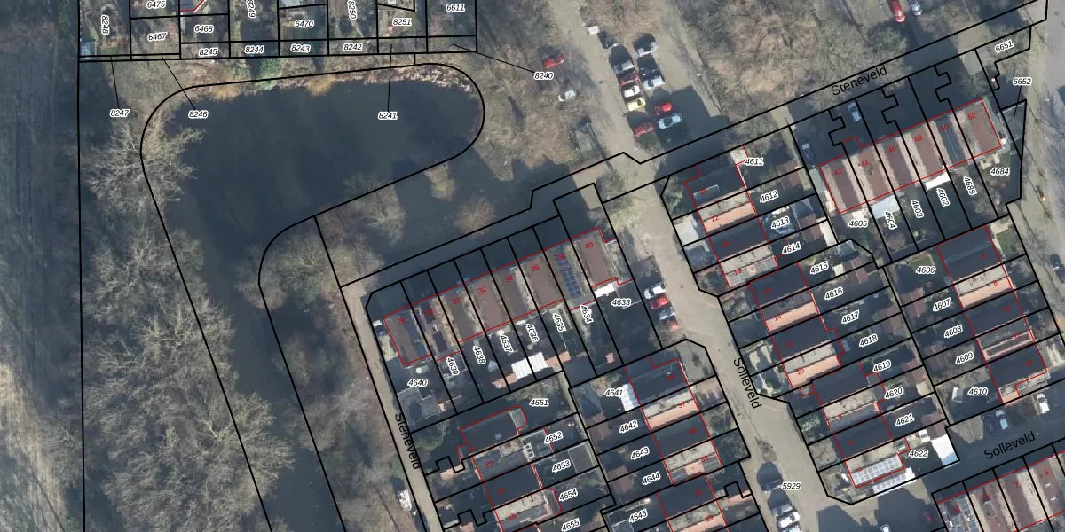 Gebruik de zoekbalk of klik op een perceel voor informatie over de adressen binnen dit perceel.
