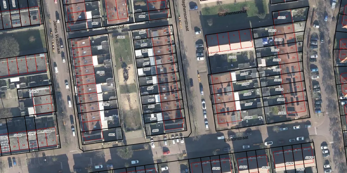 Gebruik de zoekbalk of klik op een perceel voor informatie over de adressen binnen dit perceel.