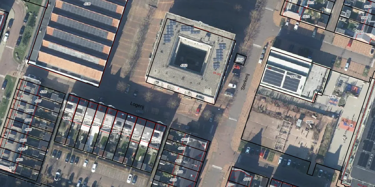 Het perceel waarop Sterkerij 33 staat heeft een oppervlakte van 1383 m². Dit is een zeer groot perceel. De perceeloppervlakte wordt geregistreerd door het Kadaster. Gedetailleerde informatie over de maten van dit perceel kunt u vinden in het rapport Kadastrale kaart met maatvoering van Sterkerij 33.