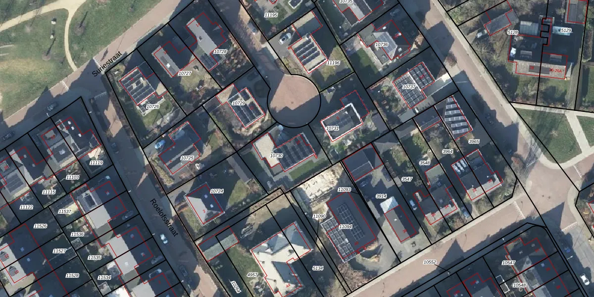 Het perceel waarop Suriestraat 10 staat heeft een oppervlakte van 478 m². Dit is een groot perceel. De perceeloppervlakte wordt geregistreerd door het Kadaster. Gedetailleerde informatie over de maten van dit perceel kunt u vinden in het rapport Kadastrale kaart met maatvoering van Suriestraat 10.