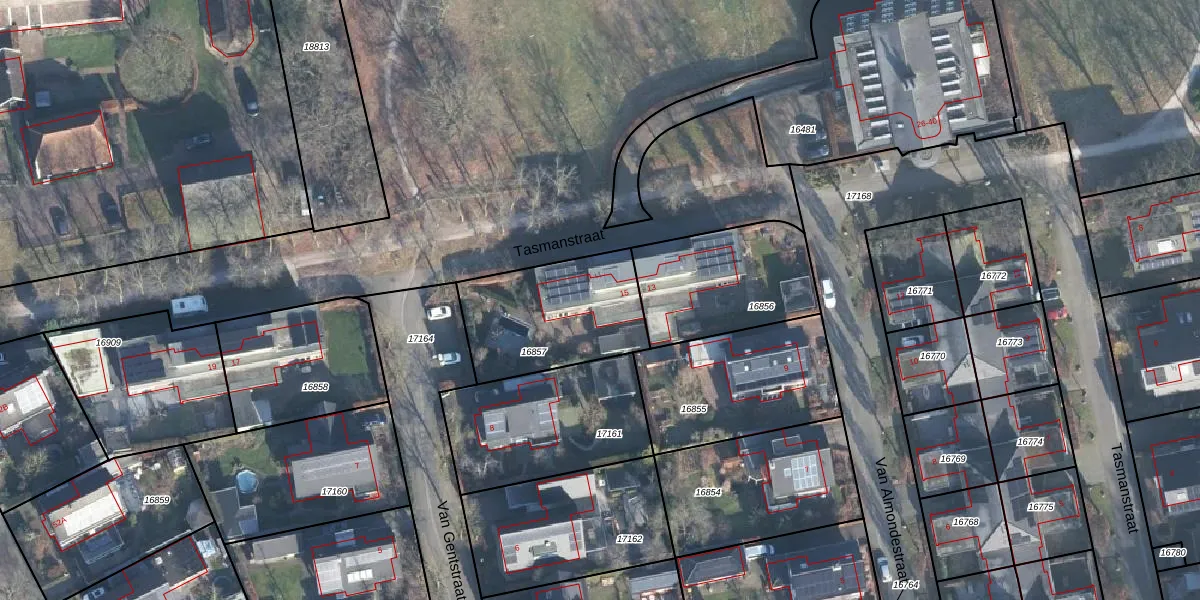 Het perceel waarop Tasmanstraat 15 staat heeft een oppervlakte van 510 m². Dit is een groot perceel. De perceeloppervlakte wordt geregistreerd door het Kadaster. Gedetailleerde informatie over de maten van dit perceel kunt u vinden in het rapport Kadastrale kaart met maatvoering van Tasmanstraat 15.