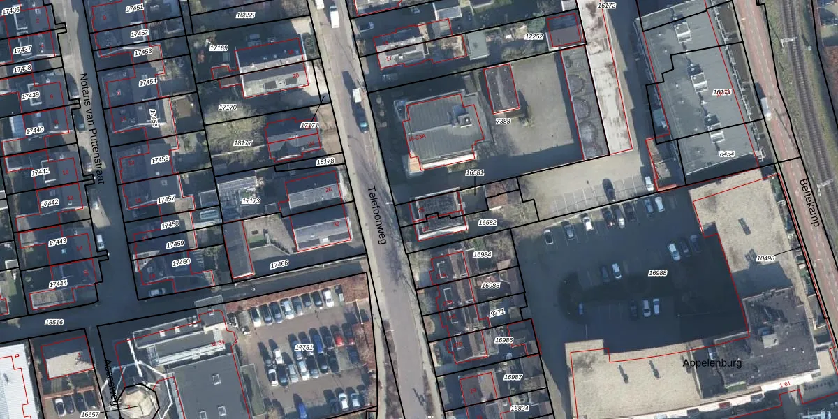 Telefoonweg 25 is gelegen op kadastraal perceel EDE01K16581. Deze kadastrale aanduiding is uniek en wordt gebruikt door het Kadaster om eigendomsrechten en andere zakelijke rechten vast te leggen. Het perceel maakt onderdeel uit van de kadastrale gemeente Ede.