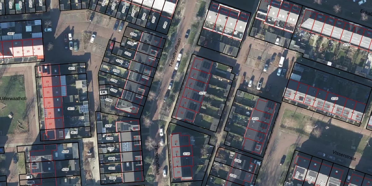 Tesselhofflaan 7 is gelegen op kadastraal perceel EDE01C3717. Deze kadastrale aanduiding is uniek en wordt gebruikt door het Kadaster om eigendomsrechten en andere zakelijke rechten vast te leggen. Het perceel maakt onderdeel uit van de kadastrale gemeente Ede.