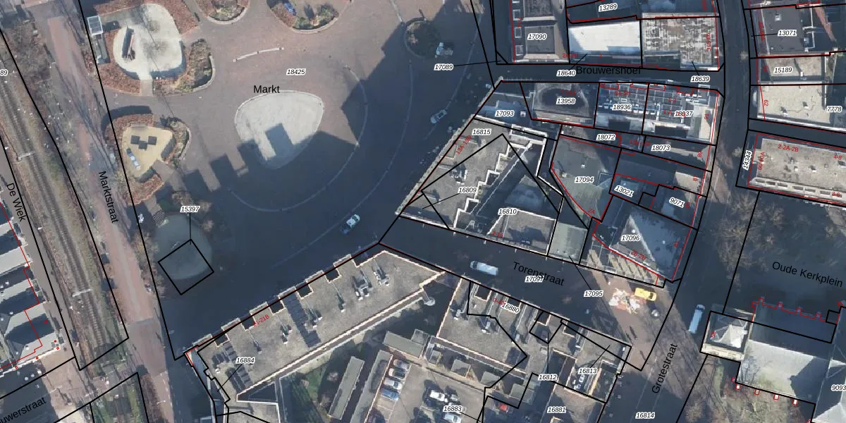 Het perceel waarop Torenstraat 16 staat heeft een oppervlakte van 44 m². Dit is een klein perceel. De perceeloppervlakte wordt geregistreerd door het Kadaster. Gedetailleerde informatie over de maten van dit perceel kunt u vinden in het rapport Kadastrale kaart met maatvoering van Torenstraat 16.