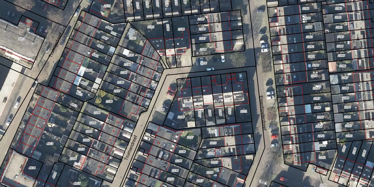 Het perceel waarop Trumandreef 98 staat heeft een oppervlakte van 311 m². Dit is een groot perceel. De perceeloppervlakte wordt geregistreerd door het Kadaster. Gedetailleerde informatie over de maten van dit perceel kunt u vinden in het rapport Kadastrale kaart met maatvoering van Trumandreef 98.
