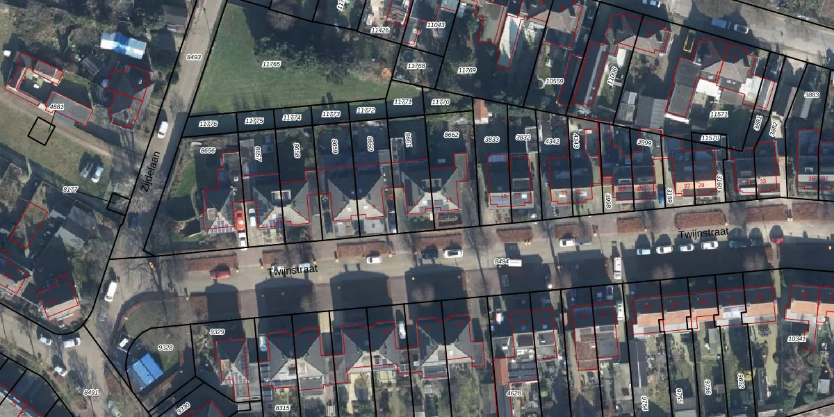 Het perceel waarop Twijnstraat 11 staat heeft een oppervlakte van 249 m². Dit is een middelgroot perceel. De perceeloppervlakte wordt geregistreerd door het Kadaster. Gedetailleerde informatie over de maten van dit perceel kunt u vinden in het rapport Kadastrale kaart met maatvoering van Twijnstraat 11.