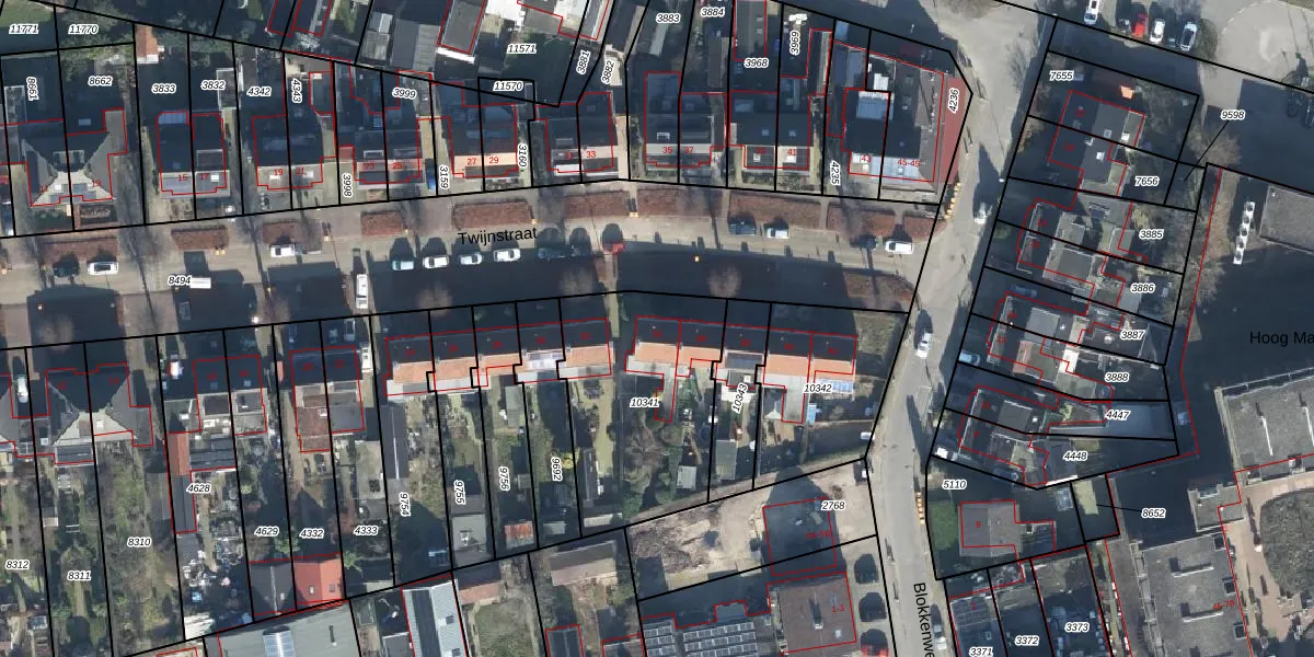 Het perceel waarop Twijnstraat 34 staat heeft een oppervlakte van 768 m². Dit is een groot perceel. De perceeloppervlakte wordt geregistreerd door het Kadaster. Gedetailleerde informatie over de maten van dit perceel kunt u vinden in het rapport Kadastrale kaart met maatvoering van Twijnstraat 34.