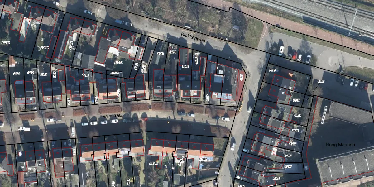 Het perceel waarop Twijnstraat 39 staat heeft een oppervlakte van 223 m². Dit is een middelgroot perceel. De perceeloppervlakte wordt geregistreerd door het Kadaster. Gedetailleerde informatie over de maten van dit perceel kunt u vinden in het rapport Kadastrale kaart met maatvoering van Twijnstraat 39.