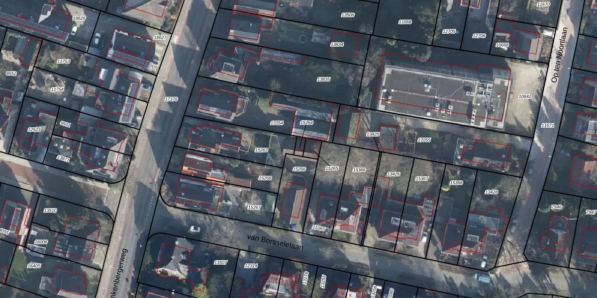 Het perceel waarop van Borsselelaan 1-B staat heeft een oppervlakte van 21 m². Dit is een klein perceel. De perceeloppervlakte wordt geregistreerd door het Kadaster. Gedetailleerde informatie over de maten van dit perceel kunt u vinden in het rapport Kadastrale kaart met maatvoering van van Borsselelaan 1-B.