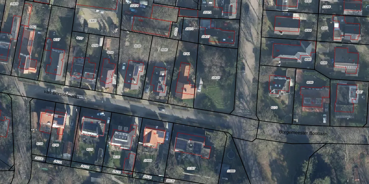 Het perceel waarop van Borsselelaan 43 staat heeft een oppervlakte van 430 m². Dit is een groot perceel. De perceeloppervlakte wordt geregistreerd door het Kadaster. Gedetailleerde informatie over de maten van dit perceel kunt u vinden in het rapport Kadastrale kaart met maatvoering van van Borsselelaan 43.