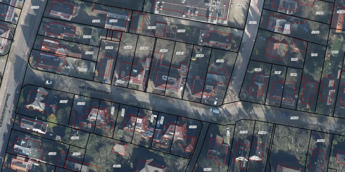 Het perceel waarop van Borsselelaan 9 staat heeft een oppervlakte van 355 m². Dit is een groot perceel. De perceeloppervlakte wordt geregistreerd door het Kadaster. Gedetailleerde informatie over de maten van dit perceel kunt u vinden in het rapport Kadastrale kaart met maatvoering van van Borsselelaan 9.