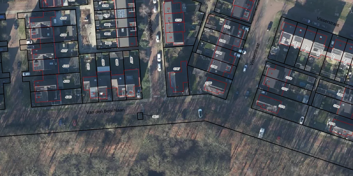 Het perceel waarop Van den Boschlaan 71 staat heeft een oppervlakte van 382 m². Dit is een groot perceel. De perceeloppervlakte wordt geregistreerd door het Kadaster. Gedetailleerde informatie over de maten van dit perceel kunt u vinden in het rapport Kadastrale kaart met maatvoering van Van den Boschlaan 71.