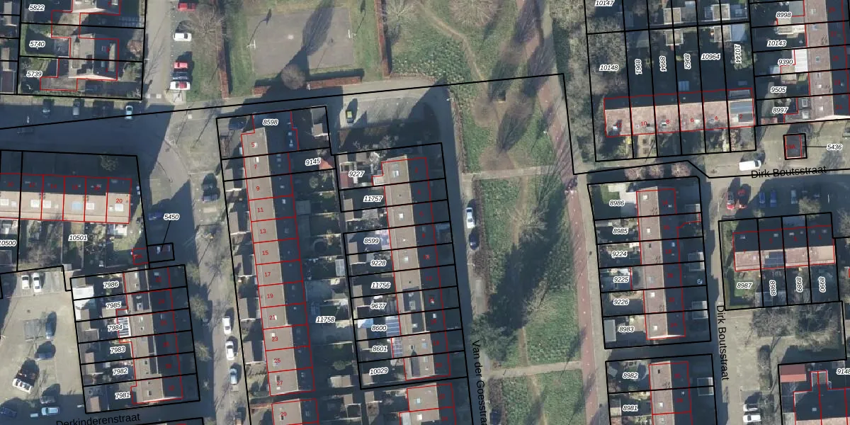 Het perceel waarop Van der Goesstraat 6 staat heeft een oppervlakte van 2122 m². Dit is een zeer groot perceel. De perceeloppervlakte wordt geregistreerd door het Kadaster. Gedetailleerde informatie over de maten van dit perceel kunt u vinden in het rapport Kadastrale kaart met maatvoering van Van der Goesstraat 6.