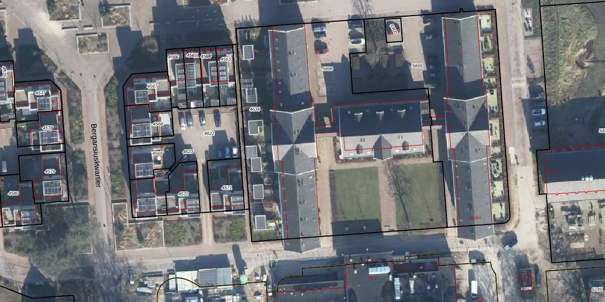 Het perceel waarop Van Essenkwartier 49 staat heeft een oppervlakte van 3895 m². Dit is een zeer groot perceel. De perceeloppervlakte wordt geregistreerd door het Kadaster. Gedetailleerde informatie over de maten van dit perceel kunt u vinden in het rapport Kadastrale kaart met maatvoering van Van Essenkwartier 49.