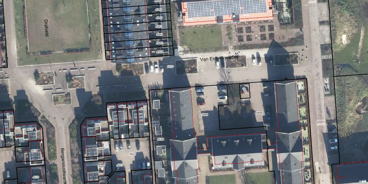 Het perceel waarop Van Essenkwartier 61 staat heeft een oppervlakte van 3895 m². Dit is een zeer groot perceel. De perceeloppervlakte wordt geregistreerd door het Kadaster. Gedetailleerde informatie over de maten van dit perceel kunt u vinden in het rapport Kadastrale kaart met maatvoering van Van Essenkwartier 61.