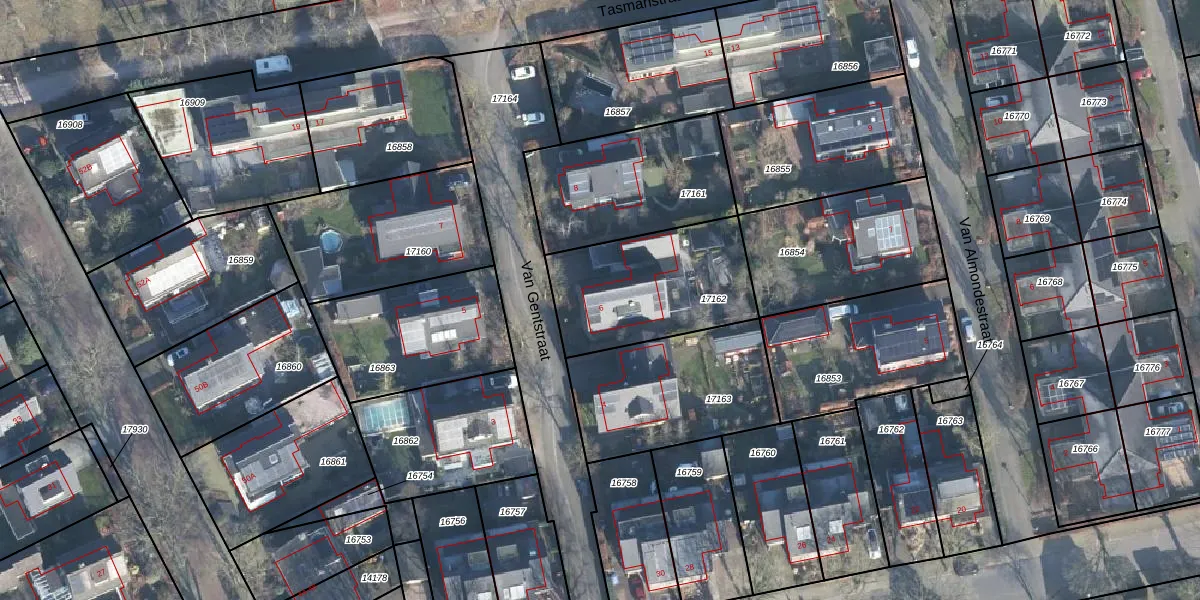 Het perceel waarop Van Gentstraat 6 staat heeft een oppervlakte van 577 m². Dit is een groot perceel. De perceeloppervlakte wordt geregistreerd door het Kadaster. Gedetailleerde informatie over de maten van dit perceel kunt u vinden in het rapport Kadastrale kaart met maatvoering van Van Gentstraat 6.