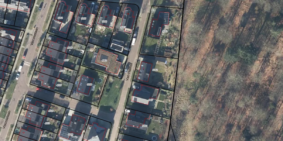 Het perceel waarop Van Hallhof 3 staat heeft een oppervlakte van 626 m². Dit is een groot perceel. De perceeloppervlakte wordt geregistreerd door het Kadaster. Gedetailleerde informatie over de maten van dit perceel kunt u vinden in het rapport Kadastrale kaart met maatvoering van Van Hallhof 3.