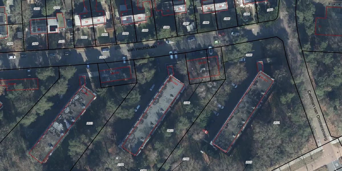 Het perceel waarop van Heutszlaan 108 staat heeft een oppervlakte van 3380 m². Dit is een zeer groot perceel. De perceeloppervlakte wordt geregistreerd door het Kadaster. Gedetailleerde informatie over de maten van dit perceel kunt u vinden in het rapport Kadastrale kaart met maatvoering van van Heutszlaan 108.