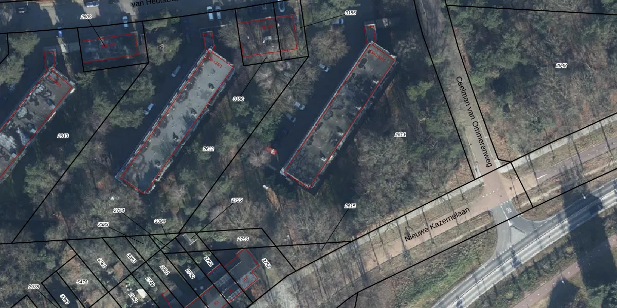 Het perceel waarop van Heutszlaan 150 staat heeft een oppervlakte van 4630 m². Dit is een zeer groot perceel. De perceeloppervlakte wordt geregistreerd door het Kadaster. Gedetailleerde informatie over de maten van dit perceel kunt u vinden in het rapport Kadastrale kaart met maatvoering van van Heutszlaan 150.