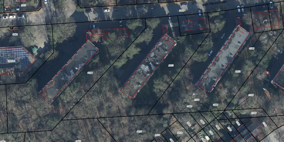 Het perceel waarop van Heutszlaan 94 staat heeft een oppervlakte van 3320 m². Dit is een zeer groot perceel. De perceeloppervlakte wordt geregistreerd door het Kadaster. Gedetailleerde informatie over de maten van dit perceel kunt u vinden in het rapport Kadastrale kaart met maatvoering van van Heutszlaan 94.