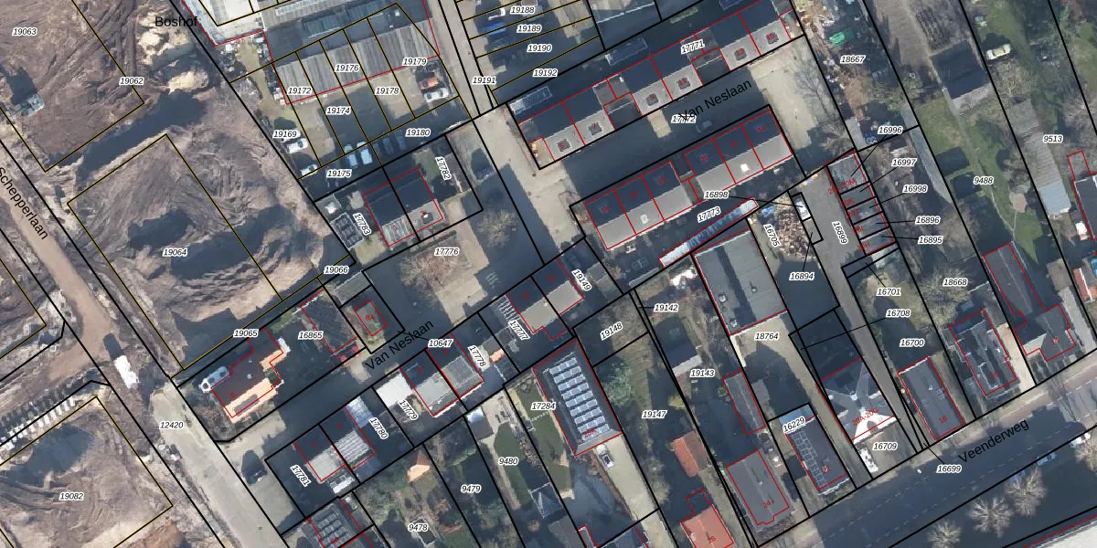 Gebruik de zoekbalk of klik op een perceel voor informatie over de adressen binnen dit perceel.