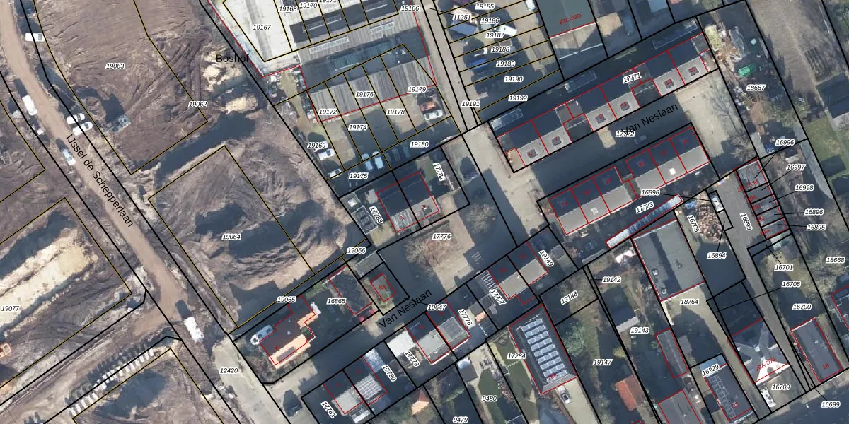 Het perceel waarop Van Neslaan 3 staat heeft een oppervlakte van 195 m². Dit is een middelgroot perceel. De perceeloppervlakte wordt geregistreerd door het Kadaster. Gedetailleerde informatie over de maten van dit perceel kunt u vinden in het rapport Kadastrale kaart met maatvoering van Van Neslaan 3.