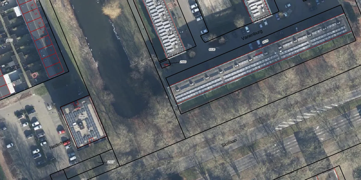Het perceel waarop Vanenburg 84 staat heeft een oppervlakte van 2304 m². Dit is een zeer groot perceel. De perceeloppervlakte wordt geregistreerd door het Kadaster. Gedetailleerde informatie over de maten van dit perceel kunt u vinden in het rapport Kadastrale kaart met maatvoering van Vanenburg 84.