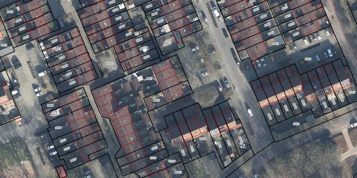Gebruik de zoekbalk of klik op een perceel voor informatie over de adressen binnen dit perceel.