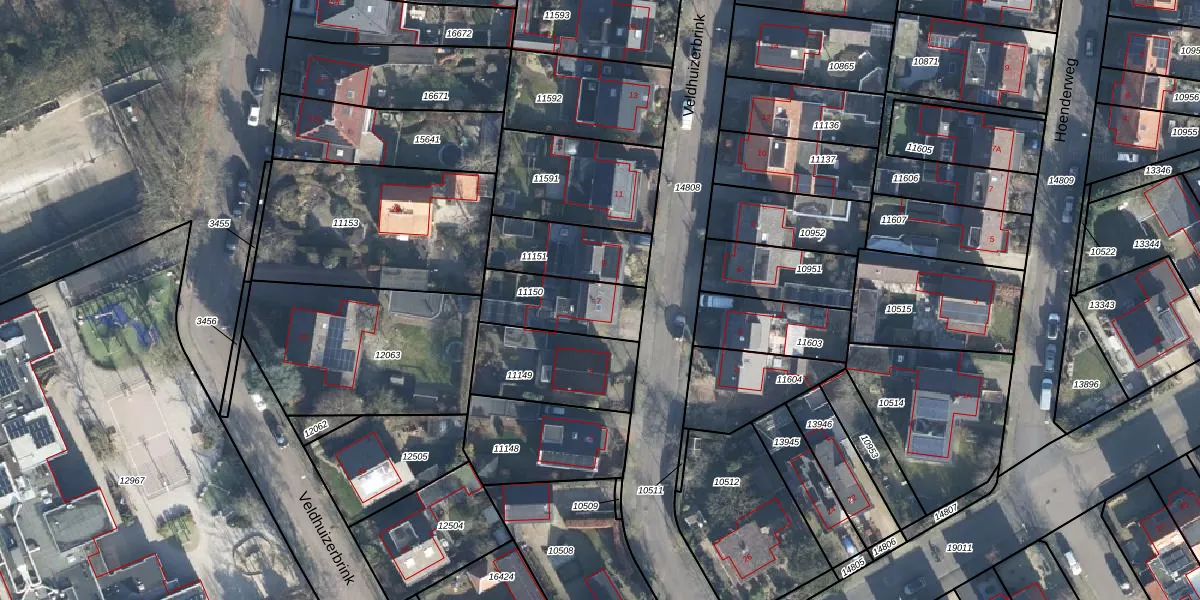Gebruik de zoekbalk of klik op een perceel voor informatie over de adressen binnen dit perceel.