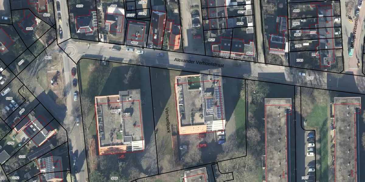 Verhuellpark 1 is gelegen op kadastraal perceel EDE01D8448. Deze kadastrale aanduiding is uniek en wordt gebruikt door het Kadaster om eigendomsrechten en andere zakelijke rechten vast te leggen. Het perceel maakt onderdeel uit van de kadastrale gemeente Ede.